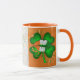 Caneca de café de Dia de São Patrício que representa a Irlanda com sua bandeira e cores. Design única e expressiva para o Dia do Paddy da Rua. Qualquer um dos nossos amigos irlandeses, este é o seu beco. Excelente para doação de presente, aniversário, colegas de trabalho, amigos. Quer seja café da manhã, chá da tarde ou mastigado com cacau quente, esta caneca vem em múltiplas duas tonalidades para escolha de cores e dois tamanhos. Cerâmica. Dispositivo de lavar louça e micro-ondas seguro.
