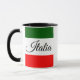 Bandeira italiana com "Italia" escrita no centro da seção branca do design verde, branco e vermelho numa bela escrita. Faz um presente divertido para a cara ou para a garota.