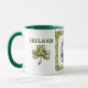 Um Claddagh envolto em intricado nó celta emoldura o escudo do brasão irlandês Barrett no centro, com trevos em ambos os lados para completar o visual de herança, criando uma caneca que parece puramente irlandesa de todos os ângulos e celebra suas raízes com simbolismo ousado e significativo.