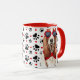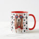 Engraçado Basset Hound em óculos de sol vermelhos moldados em corações e uma grande gravata vermelha de arco para mães e pais Basset no Dia de os namorados, aniversários, Dia de as mães e Dia de os pais.