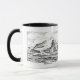 Mug with drawings of the famous German battleship Bismarck of world war II with the name of the ship written with fraktur letters.