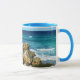Imagem é uma visão gloriosa das ondas do mar batendo nas rochas do mar
