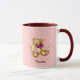 Bebê Rosa Bear Mug, presentes de bebê e roupa pela Ilustração ArtMuvz. Roupa de Chá de fraldas bonito, aniversário, presentes de natal para a mãe esperta, nova mãe, vovó, novo bebê. Vestuário de gravidez e maternidade, saco de tote, caneca, chapéu. Menina e Menino, presentes gêmeos, roupa.