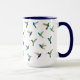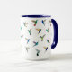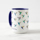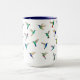 Caneca personalizada exclusiva para amantes de beija-flores, apresentando várias espécies de beija-flores, como beija-flor-de-garganta-fogo, beija-flor-de-cauda-dourada, beija-flor-de-ventre-safira, beija-flor-violáceo-mexicano, beija-flor-coroneta e beija-flor-estrelado, e beija-flor-de-anna. Imagens tiradas de pinturas originais em aquarela de Christiane Dobbins.