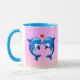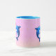 Dois golfinhos azuis virados com um coração vermelho entre eles em um fundo cor-de-rosa borbulhante—uma caneca de cerâmica giratória para casais e amantes do oceano. Mande um pedaço de doçura com cada gole. Dois golfinhos azuis brincalhões encontram nariz-a-nariz debaixo de um coração vermelho brilhante, colocados contra um pano de fundo rosa e bolha. É alegre, romântico e fresco do oceano — perfeito para encontros matinais de café, escrivaninhas, aniversários, Dia do Namorados, ou para dar aos golfinhos fãs de todas as idades.
