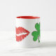Mug apresenta uma ilustração original do Dia de São Patrício de um shamrock verde e um impressão de beijo vermelho brilhante no batom. Não vê o que está procurando? Precisa de ajuda para a personalização? Entre em contato com Rebecca para ter algo projetado só para você.