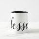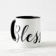 Faça uma declaração inspiradora com esta caneca de café. Lê-se "Abençoado" numa escrita negra moderna. Você pode personalizá-lo para a palavra de sua escolha ou deixar como está. Faz um presente excelente para a sua família e amigos cristãos.