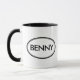 Verifique para fora esta caneca de Benny! É seu nome Benny? Ou você tem um marido, um namorado, um membro da família masculino ou um homem Benny nomeado amigo? Em caso afirmativo, esta "caneca do selo conhecido" é exatamente o presente que você está procurando! As características de design "Benny" na rotulação preta grande cercada por dois ovals, um fino e um grosso.