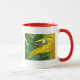 Besouro vermelho e preto agudo em uma pétala de girassol amarela com texto: tenha um dia engraçado.