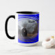 Uma foto do Big Boy 4014 jogando o Black Wolf Kansas com Smoke, Steam, e a árvore é brilhante e colorida que está em um MUG.
