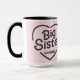 Celebrar o vínculo da irmandade com a "Big Sister Love Mug". Esta caneca encantadora apresenta a orgulhosa declaração "Irmã Grande" dentro de um coração, simbolizando o amor e a responsabilidade de ser um irmão mais velho. A design é simples, mas elegante, perfeita para uma irmã mais velha de qualquer idade. O recurso de nome personalizável na parte inferior permite um toque personalizado, fazer-o um presente pensativo para as grandes irmãs em todo o lado. Quer esteja cheia de chocolate quente ou chá, esta caneca é um lembrete diário do papel especial que desempenham.