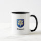 Mug with drawing of two German sailors and the coat of arms of the famous German battleship Bismarck of world war II with the name of the ship written with fraktur letters.
