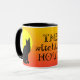 Esta é uma caneca sazonal brilhante e colorida do Dia das Bruxas, com uma silhueta de gato preto em frente a uma lua de cheio amarela. A imagem é colocada sobre um fundo laranja claro, com o texto a preto no meio, "A Hora de Testemunha". A imagem do gato e da lua é repetida duas vezes na caneca. *obrigados especiais a Lorene Digital Diva para o uso de seu texto artístico nesta imagem.*