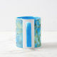 Caneca de café cerâmica para segurar sua bebida favorita, quente ou fria, que apresenta uma foto de enrolar das flores azuis-claras da Hydrangea francesa, também conhecida como Hortensia. Selecione o estilo e a cor da caneca. Um design floral adorável!
