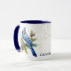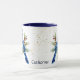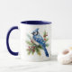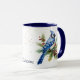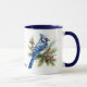 Esta bonito caneca personalizada apresenta uma bela imagem de um Blue Jay empoleirado em um galho de pinheiros com frutas vermelhas. A imagem é impressa duas vezes na caneca, com seu nome ou outro texto entre eles. Há um pequeno confete de ouro para adicionar um pouco de brilho. Os jays azuis são lindos em todas as estações!