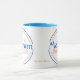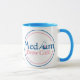 uma caneca de café de 11 onças média com manípulo azul e interior uma xícara cheia de magia!