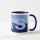 Design azul moderno de dois tons para uma caneca de café personalizada com nome e profissão (administração de negócios)... tudo editável