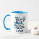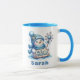 Espalhe a alegria de férias com este personalizado homem de neve azul feliz Sinal de Natal Mug! Esta charmosa caneca de café de Natal apresenta um adorável boneco de neve vestido de chapéu azul e cachecol, segurando uma festiva placa de "Feliz Natal" e uma brilhante varinha de floco de neve. Personalize-o facilmente com qualquer nome para que seja um presente perfeito de Natal, uma saudação calorosa ou uma adição agradável à sua decoração de inverno