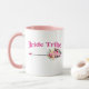 Seta boêmica e buquê com "Tribo Bride" em texto rosa