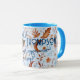 Caneca Boho chic floral lua com folhas de cobre e azul