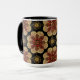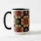 Este café ou uma caneca de chá dramático é perfeito para a sua casa de campo ou fazenda. O padrão apresenta medalhões em tons de ferrugem e ressonância sobre fundo preto. Peça um monte para sua próxima festa de chá ou reunião do clube de livros. Procure os itens de cozinha e jantar correspondentes na coleção. Esta design vem do azulejo real, do azulejo de Oregon Fay Jones Day.