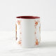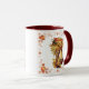 Uma caneca de café com uma imagem de Ação de Graças vintage de uma garota peregrina com cornucópia e fronteira de outono.