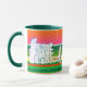 Feliz Natal, criativo, único, a saudar caneca. Vermelho verde Feliz Natal saudando a caneca de Natal. Caligrafia natalícia de inverno que escreve caneca criativa design artística moderna. Brisas pontilhadas originais únicas desejo caneca de Natal. Cor-de-rosa-rosa-verde, a decoração de casa de Natal.