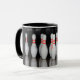 Uma caneca com foto de um rack de pinos de boliche. Se você acredita que o custo e o transporte são demais para pagar. Junte-se à Zazzle Black no check out para obter transporte livre ilimitado, grandes descontos e exclusividade de excelente o ano todo. Um membro padrão é $9,99 por ano.