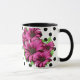 Lindas flores cor-de-rosa sobre o padrão preto e branco da Bolinhas.