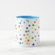 Pintura de bolinhas coloridas em vermelho, amarelo, verde, rosa e azul, em vários tamanhos, impressas em canecas. Pode ser personalizado. Escolha o estilo da caneca da sua escolha.