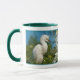 Este pássaro novo do Egret nevado tem aproximadamente cinco semanas velho e é ainda demasiado novo voar, assim que está esperando pacientemente um pai para retornar com almoço. Faz uma maneira bonita de dizer o "bom dia" nesta caneca.