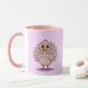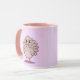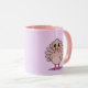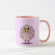 Esta é uma linda caneca combo peru de Ação de Graças. A caneca tem um interior e uma alça cor-de-rosa. Esta imagem de Ação de Graças do estilo cômico mostra um peru bonito em um fundo de lavanda leve. A design de Ação de Graças foi produzida com arte gerativa. A arte apresenta um estilo cômico bonito, peru de Ação de Graças. O jovem peru está em lavanda. A caneca é uma caneca rosa, lavanda e combo branca.