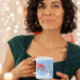 Caneca Bonito boneco de neve com árvore de cana e lua