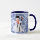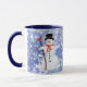 Feliz boneco de neve com um pássaro cardeal. Deixe-o nevar! Vamos lá fora construir um boneco de neve!