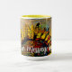 Este girassol de abstrato bonito tem cores e texturas brilhantes. Personalize esta caneca de girassol bonito adicionando o seu próprio texto ou apague-a para deixá-la vazio. Baseado em uma peça de arte original por © One Artsy Momma.