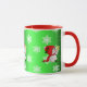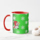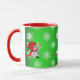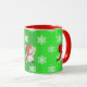 Entre no espírito da estação com um design maravilhoso que trará um ar alegre e festivo para o seu entretenimento de férias. Apresentando uma ilustração fofa de bonitinha vestindo um cachecol vermelho e segurando um sino de natal dourado contra um padrão branco de flocos de neve verde, este design legal ajudará você a dar o presente perfeito e trazer alegria de Natal para sua casa.