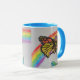 Caneca Borboleta Monarca Arco-Íris Azul. Um glorioso design divertido de aquarela. Criado a partir das minhas pinturas originais de aquarela, que pintei no meu próprio jardim de flores.