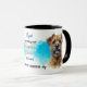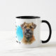 Um retrato de aquarela de um adorável Cachorro de Borda Terrier é a característica em dois lados desta caneca. Cada imagem é colocada sobre um fundo azul brilhante de tela plana. Entre as duas imagens está o texto que descreve esse companheiro leal e brincalhão, com "o cachorro TERRIER FRONTEIRIÇO" em preto no fundo. Todo o texto é facilmente personalizado para qualquer coisa que você preferir para que você possa personalizá-lo ou descrever seu próprio amigo leal!