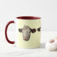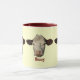 Uma vaca muito doce e séria está olhando fixamente fora dos lados esquerdos, center e direitos desta caneca. Que pode pensar? Isto trará sorrisos a tudo que o vê! Você pode personalizar o nome ou suprimir d inteiramente.