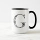 Personalize esta caneca Mão-indicada por letras de G com seu nome. Criado original na caneta e na tinta. Esta letra G é de um de meus alfabetos feitos sob encomenda. Rotule G, alfabeto, caligrafia, tipografia, monograma, flores - produto preto e branco da arte da tinta