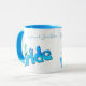 Bride in big bold letters and a pretty white floral bouquet personalized wedding coffee or tea mug. Fill in your text in the template. Available in different sizes and styles. A Groom mug and wedding party is available in my shop. Thanks for stopping by Smilin' Eyes Treasures!