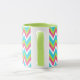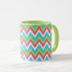 Um padrão de chevron brilhante decora esta caneca de café elegante. O design é de arte original.