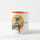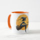 Esta personalizável design de caneca temática "Halloween" apresenta uma bruxa assustadora voando sobre vassoura com um texto que você pode personalizar.