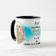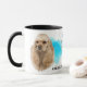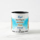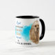Um retrato de um belo bufo ou Cachorro Americano Cachorro Americano de Cor Loura é a característica em dois lados desta caneca. Cada imagem é colocada sobre um fundo azul brilhante de tela plana. Entre as duas imagens está o texto que descreve esse companheiro leal e lúdico, com "o AMERICANO COCKER SPANIEL" em preto no fundo. Todo o texto é facilmente personalizado para qualquer coisa que você preferiria para que você possa descrever seu próprio amigo leal.