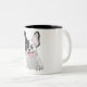 Caneca com a ilustração de um buldogue com a língua para fora e os olhos felizes.
