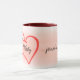 Esta doce design em cores populares de casamento mostra uma caneca burgundy com um gráfico de cor d'água borrado. Há dois corações vermelhos amontoados com a noiva e os nomes dos noivos neles e o texto fora dos corações... unidos na fé. Todos os campos de texto são modelos e podem ser alterados para ajustado de sua necessidade. Uma perfeita manutenção de casamento para os felizes recém-casados.