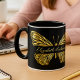 Um elegante fundo preto decorou uma borboleta dourada falsa. Personalize e adicione seu nome.