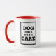Esta caneca de café engraçada proclama, "Cabelo de cão, não se importe!" Altere facilmente o interior e manipule a cor se desejar.