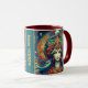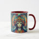 Mug Personalizado com manípulo colorido - Cabeça estética de deusa fluindo pelo cabelo azul turquesa - Mês de abril Vibes - Esta bela Design no estilo ai mostra a Cabeça de uma bela Mulher com olhos azuis brilhantes e coroa de joias decorativas na sua cabeça num Universo celeste divino. As principais cores nesta peça de arte são o tom de pele lacrimejante, turquesa, laranja, vermelho, cremoso leve. Isso faz um belo presente para você e seus amigos e família. Você pode personalizar o Texto - VISÃO interna - para seu gosto ou excluí-lo.