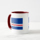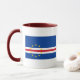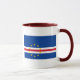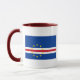 Bandeira de Cabo Verde. A bandeira nacional de Cabo Verde foi adotada em 22 de setembro de 1992, substituindo a bandeira adotada durante a independência de Cabo Verde, lutando com a Guiné-Bissau, outra antiga colônia portuguesa no continente da África Ocidental. As 10 estrelas na bandeira representam as principais ilhas da nação (uma cadeia de ilhas ao largo da costa da África Ocidental). O azul representa o oceano e o céu. A banda do branco e do vermelho representa o caminho para a construção da nação, e as cores representam a paz (branco) e o esforço (vermelho).